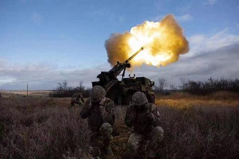 当地时间2022年12月28日,乌克兰军人用凯撒自行榴弹炮向乌克兰东部的俄罗斯阵地开火。视觉中国