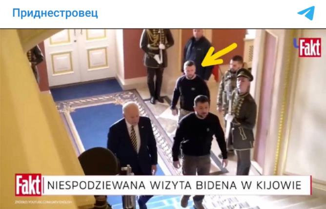 一位样貌、身型都与泽连斯基极为相像的男子引起网友热议。俄新社、《观点报》等多家俄媒25日报道称,拜登本月20日突访基辅与泽连斯基会谈后,不少社交平台博主扒出泽连斯基与拜登“同框”的媒体报道画面,在二人上楼的画面中,可以看到泽连斯基身后有一名男子,该男子与泽连斯基的身型、脸型、发型,甚至穿着都惊人地相似。有博主表示,“泽连斯基的替身出现了?”