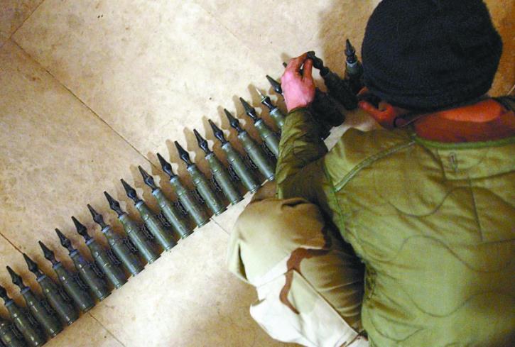 2004年2月11日,一名美军士兵在伊拉克北部的提克里特基地清点25毫米口径贫化铀弹药。 (法新社)