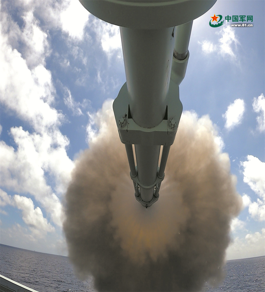 “发现可疑目标!”指挥员迅速判断目标性质,命令对海部门锁定目标并实施打击。顷刻间,主炮怒吼,对目标连续实施打击。
