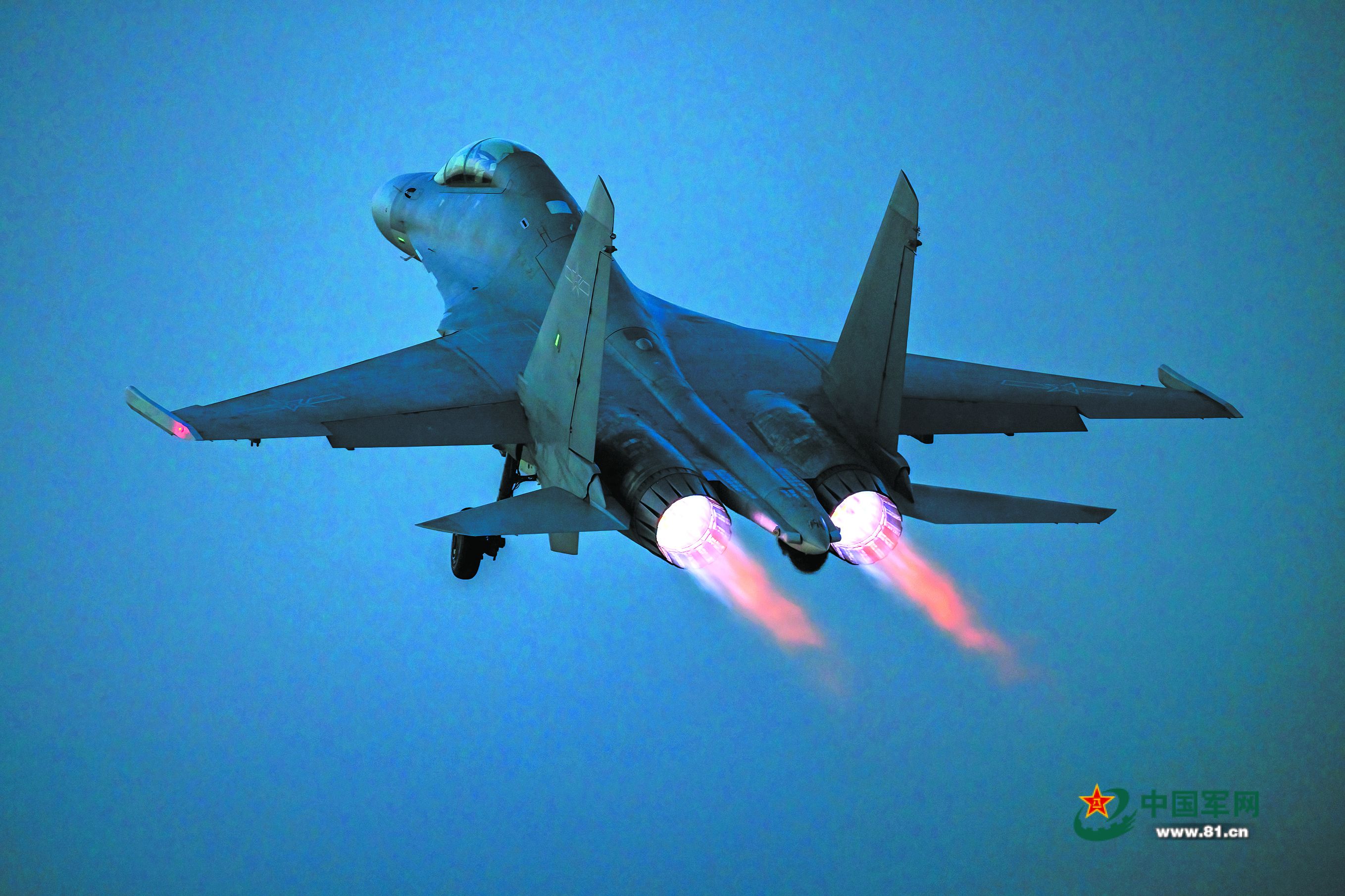 夜幕降临,战机拖着尾焰直冲云霄。