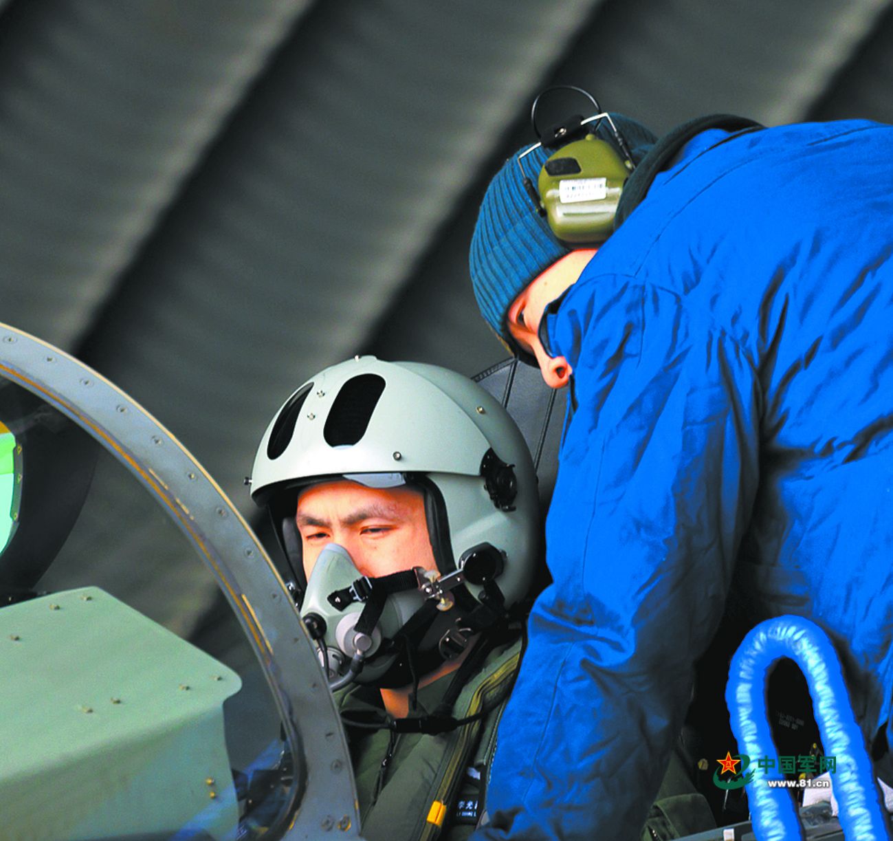 机务人员协助飞行员检查战机。