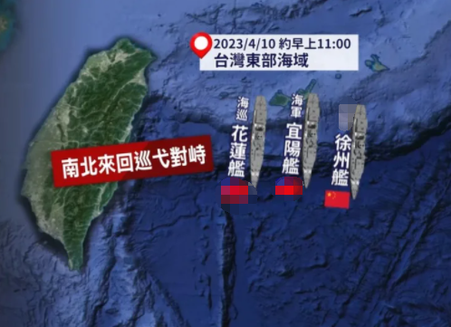 报道宣称,解放军军舰“徐州舰”连日现身台岛东部海域,10日早上约11时再次出现在台岛东部海域,台海巡“花莲舰”与台海军“宜阳舰”进行“监视”。台军广播声称:“如果你执意进入我24海里邻接区,我将被迫采取驱离行动。”