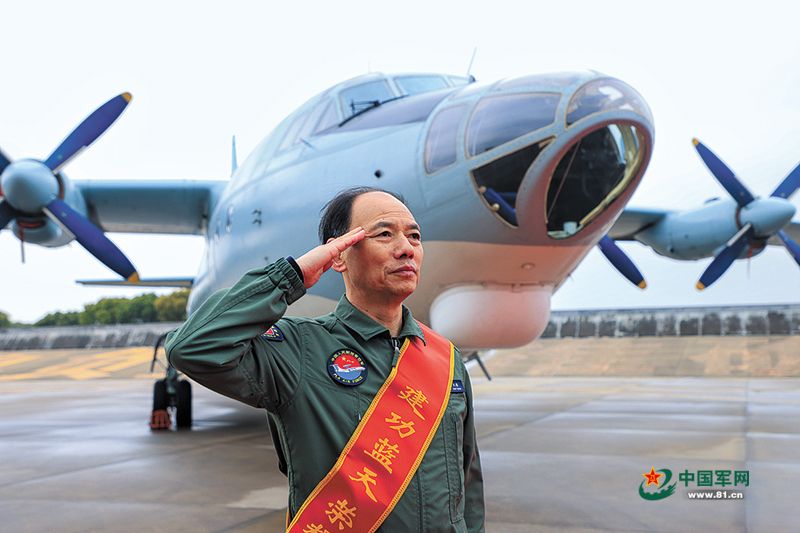 停飞人员代表杨坚强向战友们敬礼告别。晏昊星摄