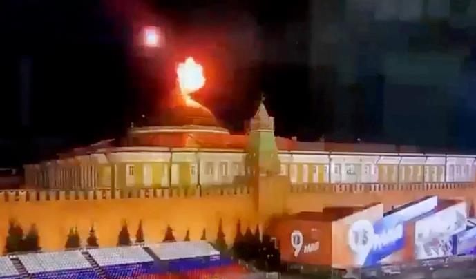 2023年5月3日的一段视频显示,一架无人机在克里姆林宫穹顶附近爆炸。 美国有线电视新闻网(CNN)报道配图