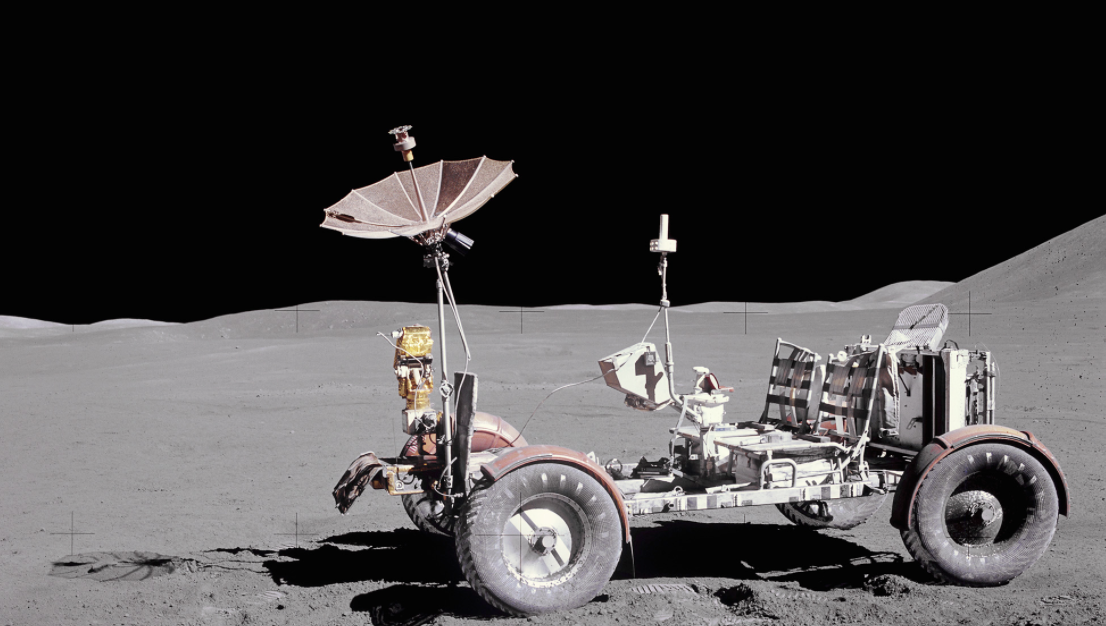 美国阿波罗计划6次登月,只有最后3次才带上了月球车,为了最大限度降低发射质量和占用空间,阿波罗的月球车是一种折叠式的两座四轮电动车,重量只有约210千克,为了适应月面严峻的地形和极端的温度,轮胎还使用手工编织的钢丝网。载人航天工程三十年成就展上,我国月面着陆器也将携带了四轮月球车,根据载人航天工程办公室招标信息,2030年前我国首次登月中,两名航天员就将驾驶月球车开展科考活动,它将具备载人驾乘、月面移动、定位支持、安全辅助等功能,为航天员提供移动、通信、探测辅助等保障支持。