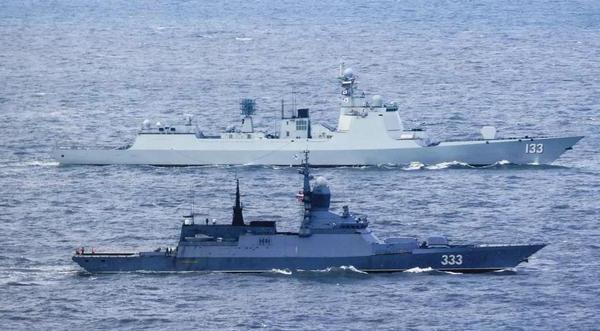 2021年10月份,中俄海军组织了首次海上联合巡航。“海上联合-2021”演习结束后,中俄海军10艘舰艇及6架舰载直升机组成联合编队,从彼得大帝湾出发,横渡日本海,穿越津轻海峡,经西太平洋南下,穿越大隅海峡进入东海。