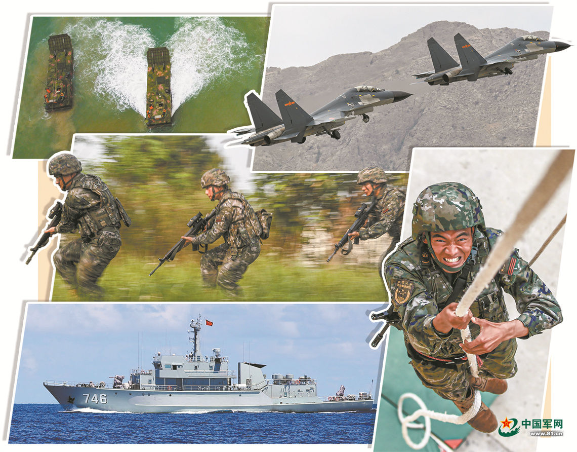 “八一”前夕,各部队组织实战化训练,全方位提高官兵打仗本领。供图:喻泽琪、杨 雪、刘承润、何 昆、危 凯,制图:方 汉、杨 磊