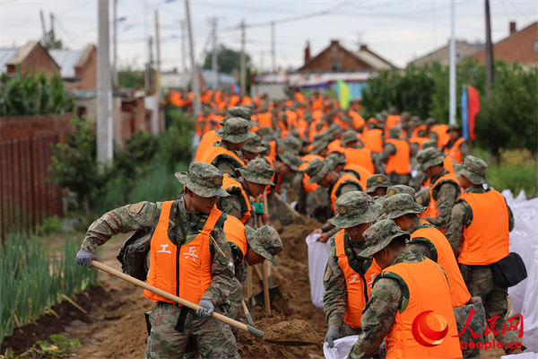 8月4日傍晚,齐齐哈尔市雅鲁河水位暴涨,出现多处管涌和塌方。某合成旅200余名官兵深夜出征,次日凌晨3时抵达,到位后快速展开、快速抢险;因上游水库泄洪,哈尔滨市双城区拉林河面临超大洪峰,8月7日凌晨4时,某合成旅450名官兵星夜兼程奔赴河堤与先期抵达的官兵一同加固堤防。