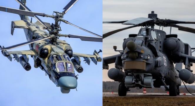 俄军卡-52(左)及米-28(右)武装直升机 资料图 图源:《军事观察》杂志网站