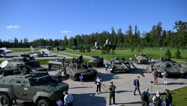 俄国防部在“军队-2023”上展出的缴获装备 图源:“今日俄罗斯”电视台网站