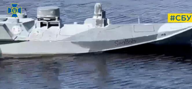 “海婴”自杀无人艇 图源:乌克兰国家安全局社交媒体