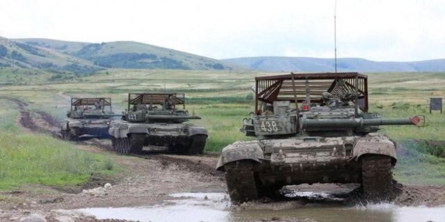 冲突初期,为了反制攻顶反坦克弹药,俄军“土法上马”,为各类主战坦克临时加装了顶部格栅装甲。