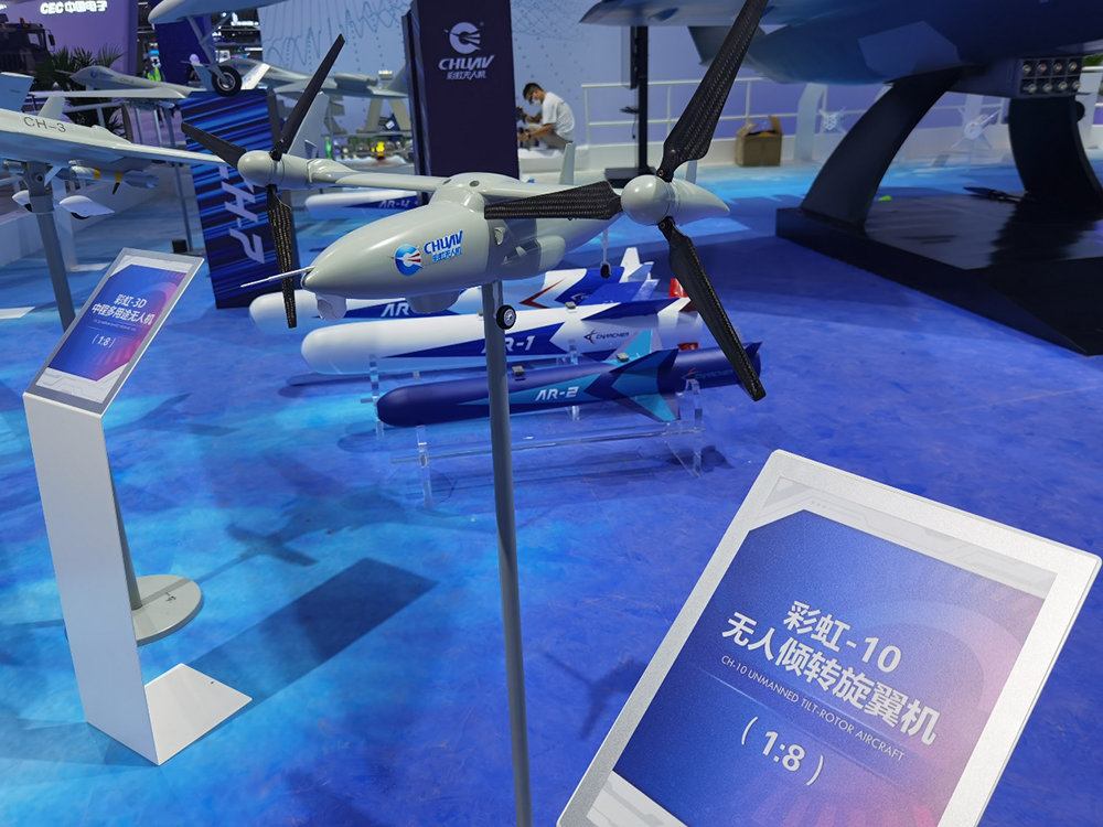 珠海航展上展示的彩虹-10无人倾转旋翼机。