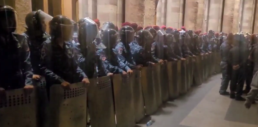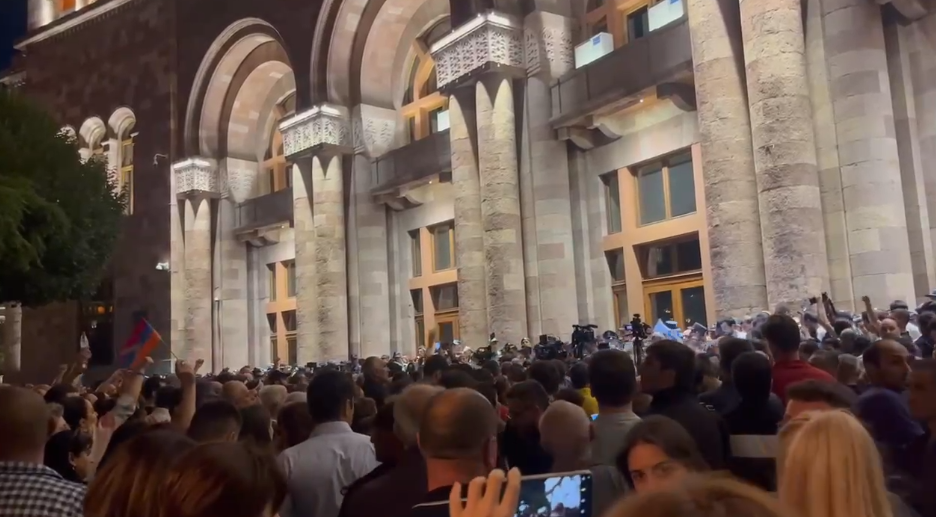 随后,亚美尼亚强力部门执法人员前往亚美尼亚政府大楼前维持秩序。