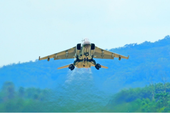 不一会儿,战机出现在视野中,搜索目标,俯冲、瞄准、射击、跃升……一连串动作一气呵成,机翼下瞬间喷射出两条橘红色火焰飞泻而下,直扑靶标。