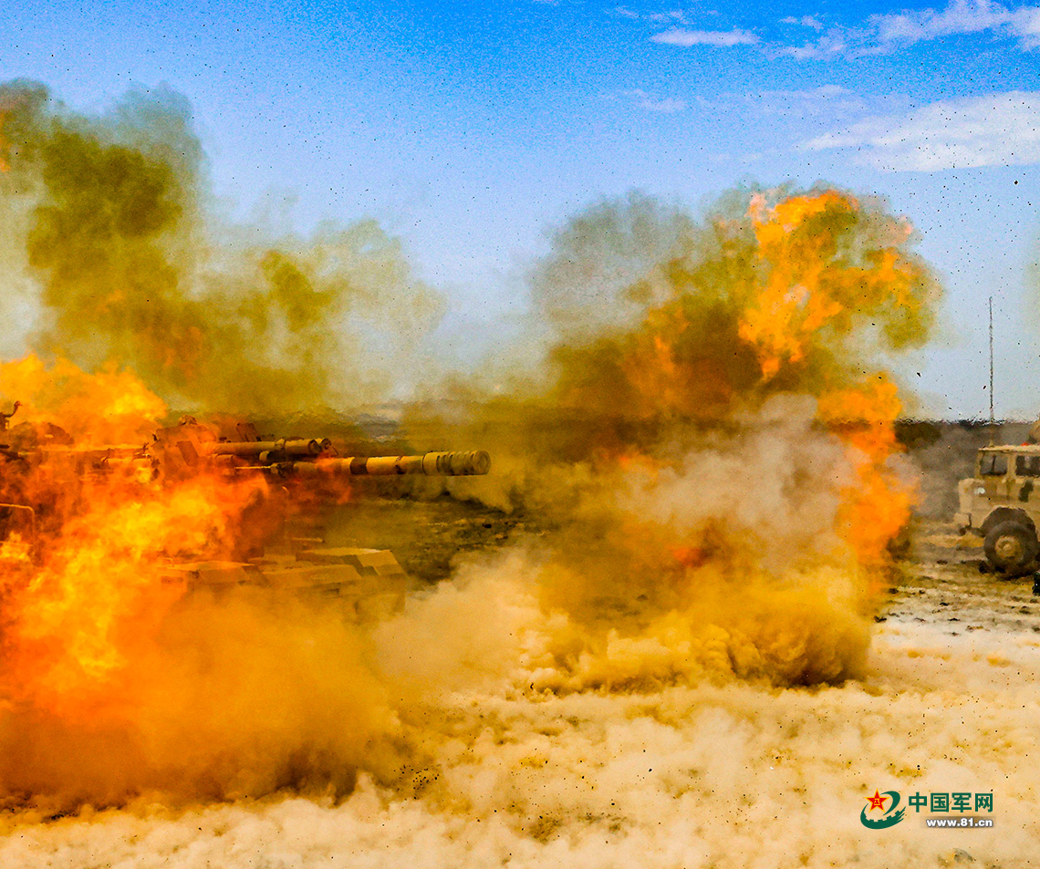 戈壁演兵,烈焰喷涌。