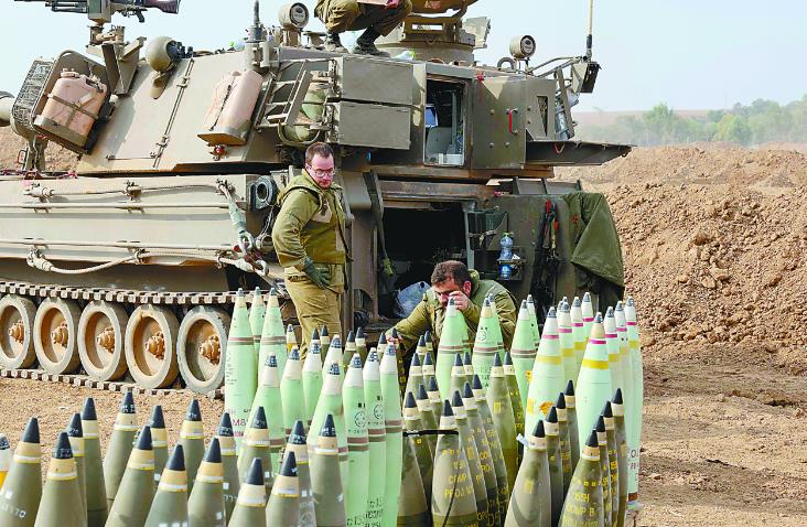当地时间10月9日,以军士兵在加沙附近部署炮弹。