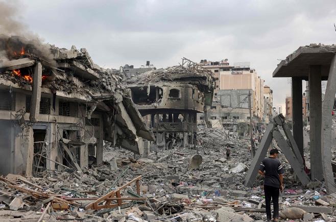 当地时间2023年10月10日,加沙城,当地遭受以色列空袭后满目疮痍。
