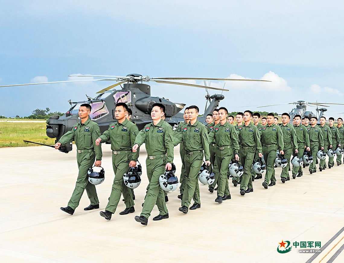 “起飞!”随着指挥员一声令下,某陆航旅数架直升机盘旋升空,完成战术编组后迅速向预定海域飞去。