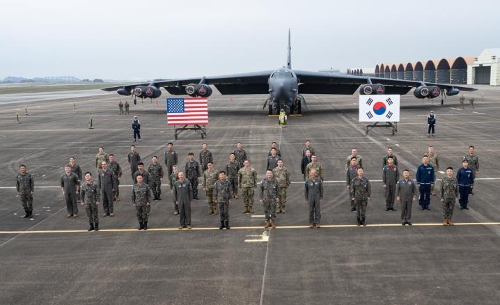 报道称,美韩、美日此前在朝鲜半岛附近上空多次实施空中联演,但美日韩三国空军联演尚属首次。此次美日韩联合空演采用美日韩战斗机护卫美国B-52战略轰炸机的编队飞行方式进行。