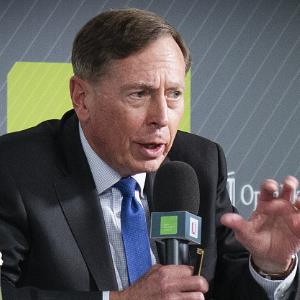 今年9月5日,乌克兰基辅,美国中央情报局前局长彼得雷乌斯参加了基辅安全论坛的小组讨论会议。(视觉中国)