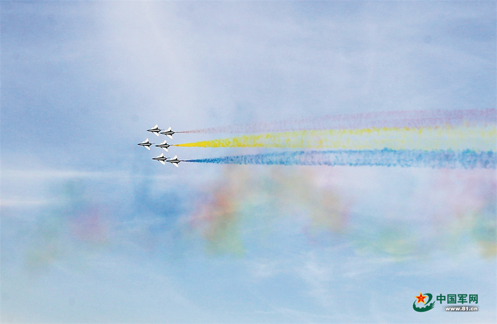 11月11日,适应性训练当天也是人民空军成立74周年纪念日,空军八一飞行表演队为人民空军送上祝福,“与时代共奋飞,逐梦空天向未来。祝福人民空军生日快乐,祝伟大祖国繁荣昌盛。”