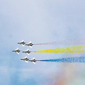 空军八一飞行表演队进行迪拜航空展适应性训练。 朱姜海摄