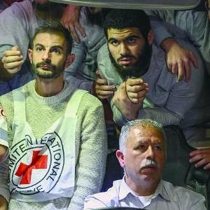 与此同时,美联社称,以色列方面释放的78名巴勒斯坦人在约旦河西岸“受到英雄般的欢迎”,支持者挥舞着巴勒斯坦国国旗、哈马斯的旗帜和管理约旦河西岸的巴勒斯坦民族权力机构(法塔赫)的旗帜。BBC称,与前一天相比,25日晚引人注目的是,哈马斯绿色旗帜的数量增加了数倍。支持者举着巨大的旗帜,年轻人的额头上绑着哈马斯头带。《以色列时报》称,尽管以色列政府指示东耶路撒冷警方阻止庆祝活动,警方试图驱散人群,但庆祝活动仍然举行。