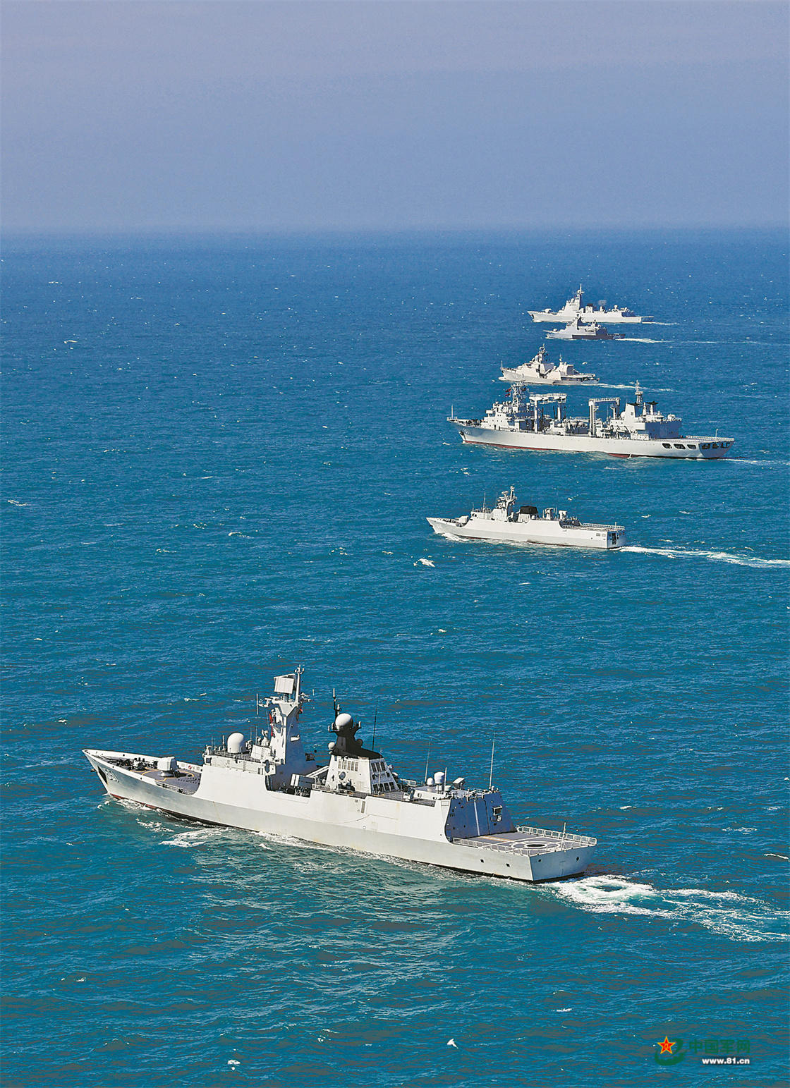 多国舰艇编队向演习海域集结。吴亢慈 摄