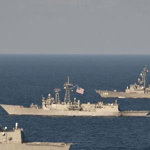 韩国国防部说,这些军舰进行了防空演练和海上机动演习。