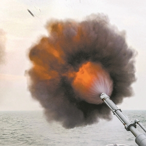 “‘敌机’一批两架向我近飞。”导弹攻击未果,“敌机”试图逼近打击。各舰保持高度戒备,抓住有利时机锁定目标,随即展开自主抗击。伴着隆隆炮声,一枚枚炮弹直扑“敌机”。