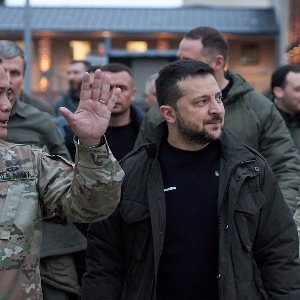 据美联社12月14日报道,乌克兰总统泽连斯基14日首次访问美军在德国的总部,即美军欧洲司令部。那里是各方协调武器运输及其他援助物资问题的场所。