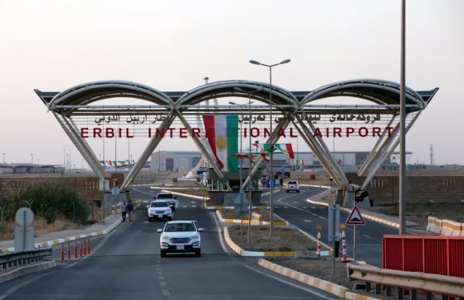 爆炸发生后,伊拉克库区埃尔比勒国际机场空中交通暂停 图自半岛电视台报道配图