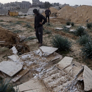 1月17日,以色列军队对加沙地带南部城市汗尤尼斯一处墓地进行“严重破坏”后,巴勒斯坦人正检查被损害的坟墓。 图源:美媒