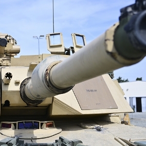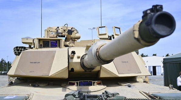 当地时间2023年7月14日,一辆美国陆军M1A1艾布拉姆斯坦克交付给乌克兰。(视觉中国)