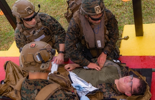 驻日本冲绳美国海军陆战队举行应对“大规模伤亡”的救治演习,图源:美国“防务博客”网站
