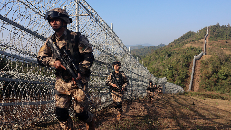 2月9日,陆军某边防旅官兵巡逻在中老边防线上。新华社发(罗鉴 摄)