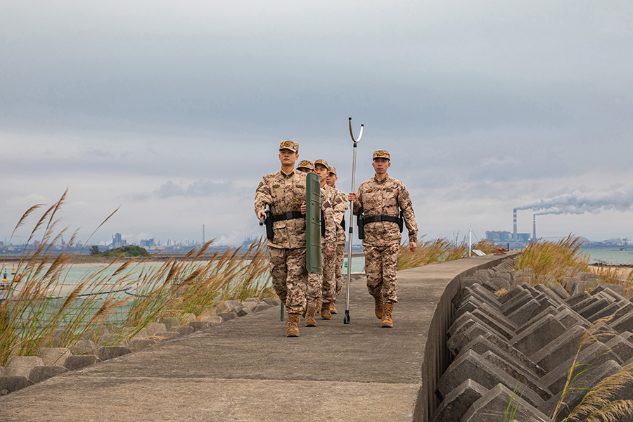 2月9日,驻守在三沙永兴岛的武警海南总队海口支队官兵在码头巡逻执勤。新华社发 (雷辙 摄)