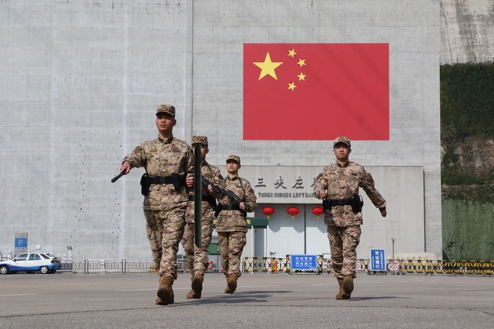 2月9日,武警湖北总队宜昌支队官兵在三峡大坝巡逻。新华社发(谢定安 摄)