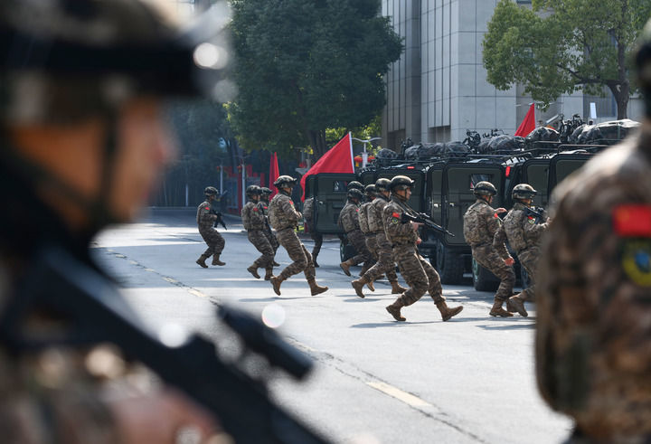 2月9日,武警安徽总队合肥支队组织官兵进行拉动演练。新华社发(徐伟 摄)