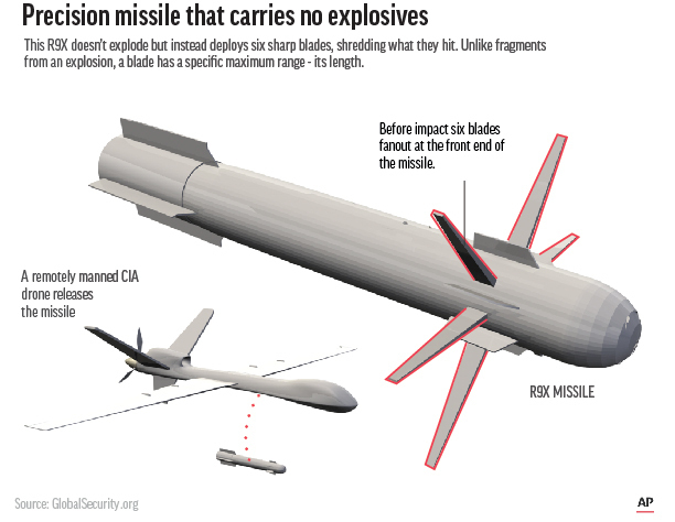 这种武器的正式名称为R9X,是五角大楼和中央情报局设计的一款惰性“狱火”导弹,用于“斩首”恐怖组织头目。国防部官员说,使用这种武器的部分原因是,担心造成无辜的旁观者死亡可能会加剧伊拉克本已紧张的政治局势。伊拉克驻扎着约2500名美国军人。