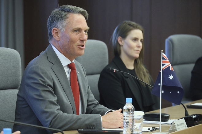 澳大利亚国防部长马尔斯(左),资料图,图源:视觉中国