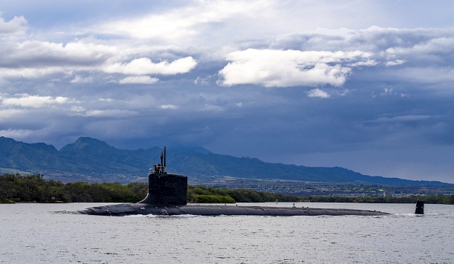 2021年9月1日,美国珍珠港,“弗吉尼亚”级快速攻击潜艇密苏里号(SSN 780)离开珍珠港-希卡姆联合基地。(视觉中国)