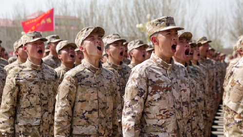 火箭军某部新兵营近日举行2024年度上半年新兵入伍训练集中统训开训动员大会,数百名新兵将在这里正式开启军旅新征程。新兵代表依次登台,表达扎根军营、矢志强军的决心。动员大会结束后,新兵们迅速奔赴练兵场,投入紧张的训练之中。(陈世锋、段朔、郑义)