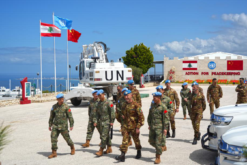当地时间4月6日,联合国驻黎巴嫩临时部队(联黎部队)西区新任司令和西区参谋长带队,前往中国第22批赴黎维和建筑工兵分队营区进行检查指导和现地交流。