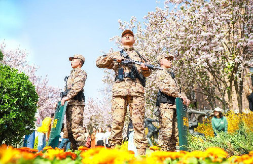 春暖花开,一年一度的海棠花节如期举行,天津五大道文化旅游区迎来客流高峰。连日来,武警天津总队执勤一支队官兵坚守执勤哨位,科学部署兵力,灵活采取乘车巡逻、徒步巡逻、定点警戒相结合的方式,加大巡逻执勤力度,守护来往游客平安出行。(贺帅、李子游、张少伟、王良)