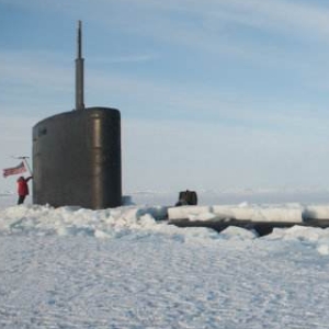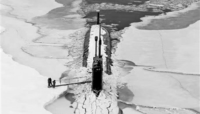 美军核潜艇在北极军演中顶破冰层浮出海面。