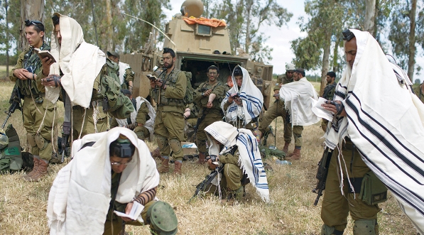 2014年5月19日,“耶胡达胜利营”士兵在戈兰高地附近参加年度演习期间进行祷告。(法新社)