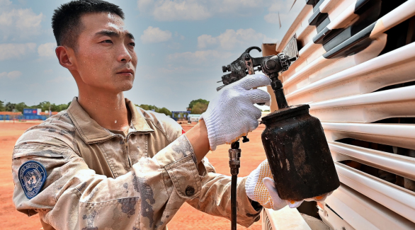 节日期间,中国第14批赴南苏丹(瓦乌)维和工兵分队官兵坚守战位,在距离祖国万里之遥的南苏丹,他们整治装备排除故障、常备不懈加强防卫,在各自岗位上付出辛勤汗水。